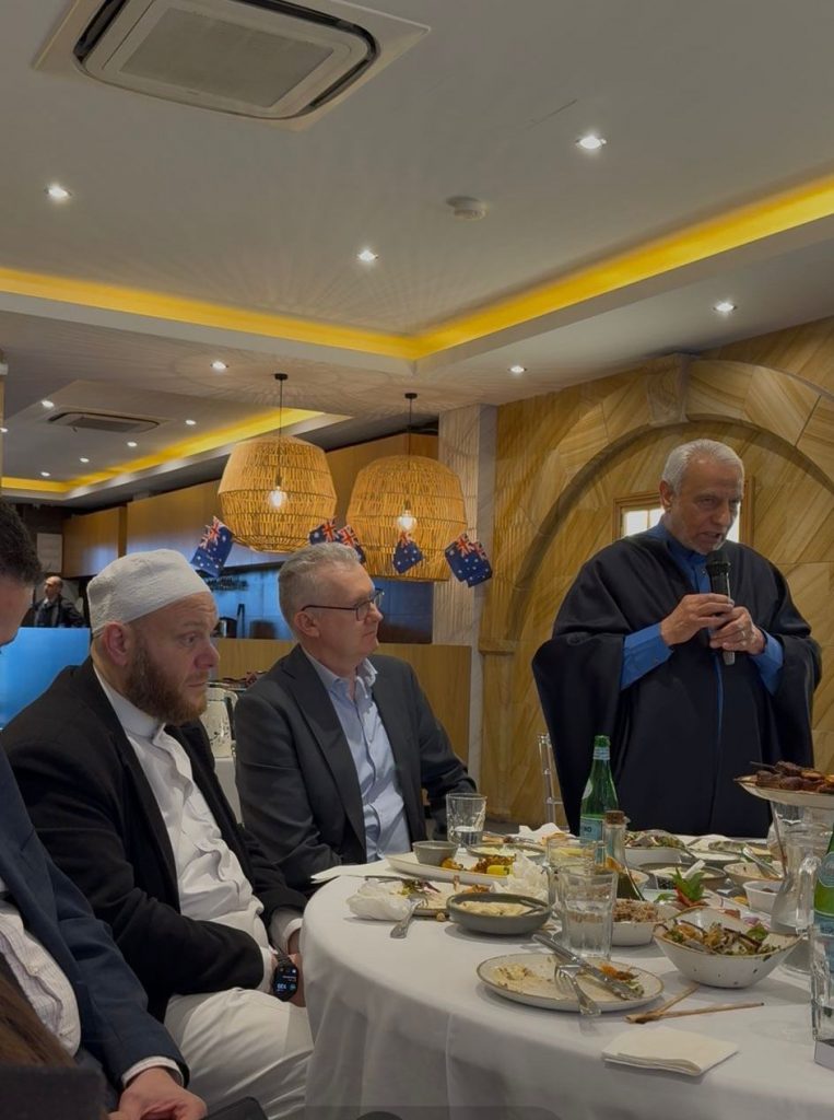 وقد شرف اللقاء كل من: رئيس بلدية بانكستاون بلال حايك، مفتي أستراليا الدكتور الشيخ إبراهيم أبو محمد، الشيخ شادي السليمان.