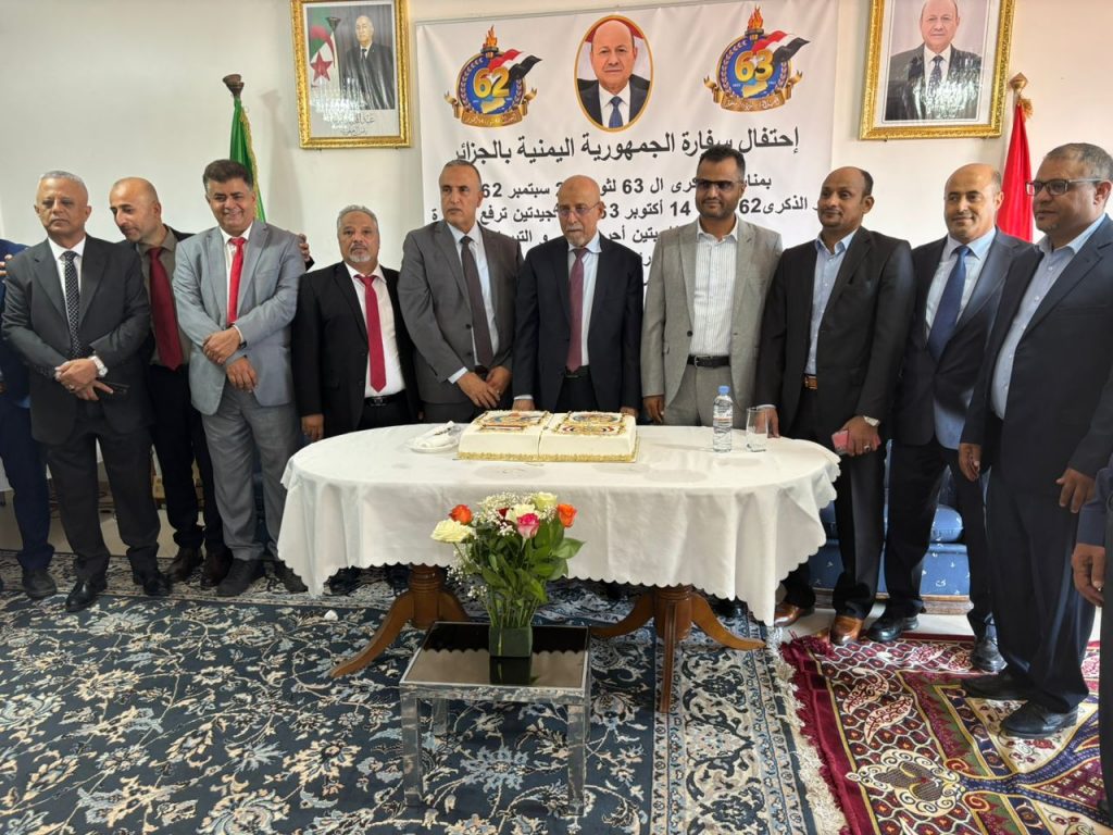 العرب نيوز (الجزائر):د.دحمان الحدي – في عاصمة المليون شهيد، وعلى أرض الجزائر التي عانقت الحرية من رحم الكفاح، احتفلت سفارة الجمهورية اليمنية بالذكرى الثالثة والستين لثورة السادس والعشرين من سبتمبر، والذكرى الثانية والستين لثورة الرابع عشر من أكتوبر، في فعالية وطنية بهية احتضنها مبنى السفارة، حيث امتزج التاريخ بالوجدان، وتلاقى المجد بالعرفان.