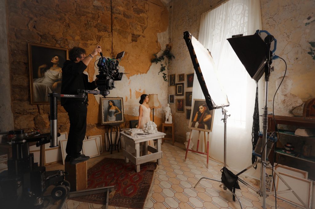 القيمة البصرية للعمل لا تقف عند السرد. فقد أُنجز التصوير في Kay Lounge – ضهور الشوير، في مبنى فندق مهجور جرى تحويله بالكامل إلى مرسم نحت خاص بخدمة الحكاية، في فضاء بصري بارد، خشن الحواف، يوازي وحدة الحجر وعزلة الخيبة. امتلأ المكان بتماثيل ووجوه منحوتة جرى تنفيذها خصيصاً لهذا الجو البصري وهي من توقيع النحّات وليد طبشراني، الذي حضر بقوة عبر الأعمال النحتية التي أتاح استخدامها وساهم في توظيفها لخلق المناخ الشعوري المطلوب. بهذا المعنى، بدا المشغل وكأنه مساحة أُعِدّت لتكون مسرح الألم الداخلي للشخصية، لا مجرد موقع تصوير.